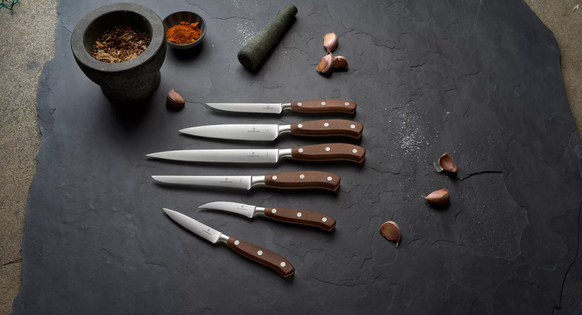 Combining beautiful form with high function, the Grand Maître Steak Knife from the Victorinox series of forged knives has a full tang blade that is uniformly hardened and perfectly balanced. But it’s not just this blade that gives the steak knife its robust strength – its wooden handle continues this theme, being both elegant and hard-wearing. Hand-polished and ergonomically designed, this handle promises its user comfort and supreme ease of use. The sleek steak knives of this four-piece set will slice steaks and other meats with ease. Ideal for private or professional use. Create an elegant table setting that will impress your guests for sure.