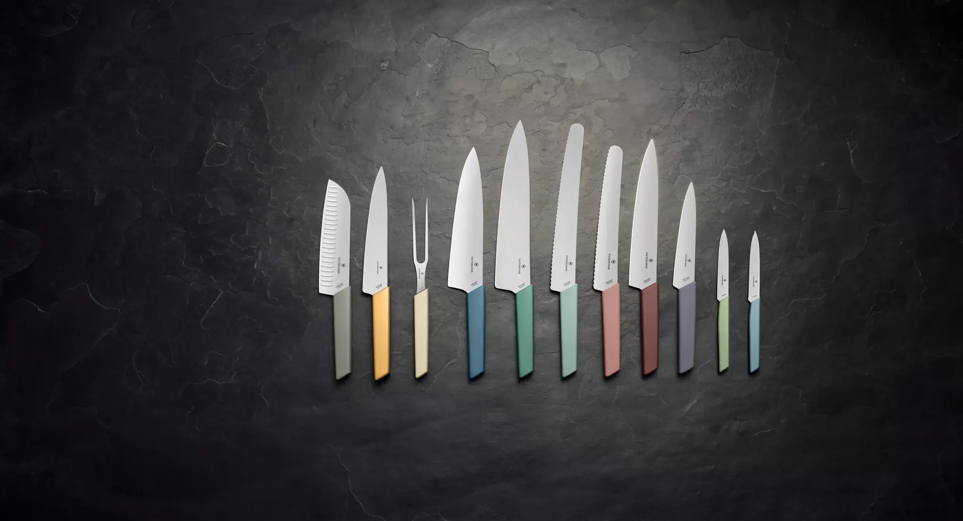 Elegant design meets high precision in the Victorinox Swiss Modern collection. Every blade is formed of wear-resistant stainless steel to enable effortless cutting. Available with richly grained, unique handles in warm European walnut wood or with synthetic handles in vibrant colors or in classy black, these pieces are ergonomically shaped for ultimate comfort. The result is a contemporary update of mankind’s most important tool.