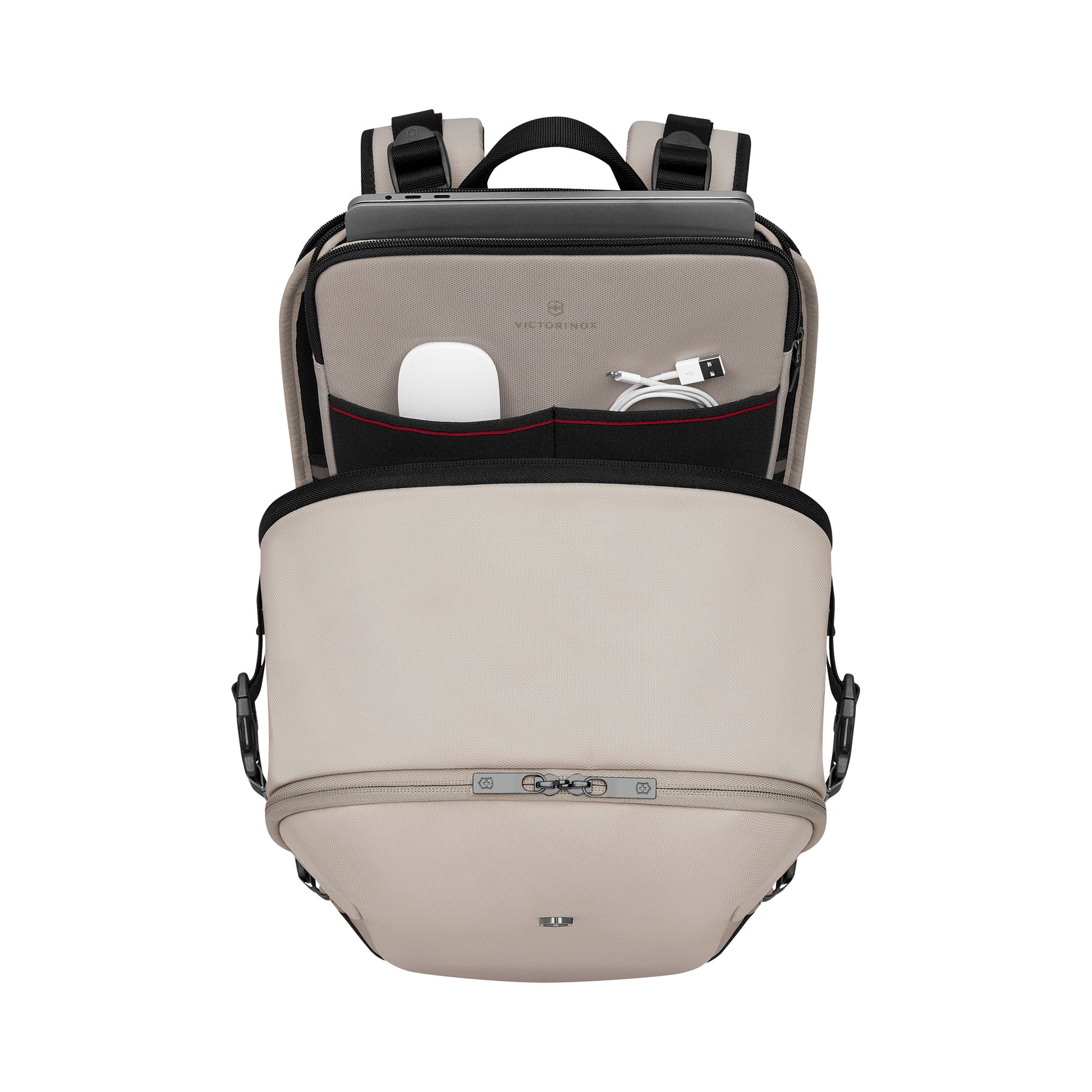 The Altmont Modern Traveler Backpack was designed specifically to provide users the opportunity to pack, secure and access all they need for travel success. From business essentials packed in the cleverly designed organizational compartments (key fob, sound pockets, zippered pocket, scratch-resistant electronics pocket and removable 15.6” laptop sleeve), to leisure must-haves loaded through the book-like clamshell access and protected with the water-resistant construction. Crafted from recycled Polyester (rPET), an alternative to conventional polyester, and using a recycled and antimicrobial lining, the Traveler Backpack is highly tensile strength resistant, highly abrasion resistant and colourfast and has a protective bottom, making it durable and easy to clean.