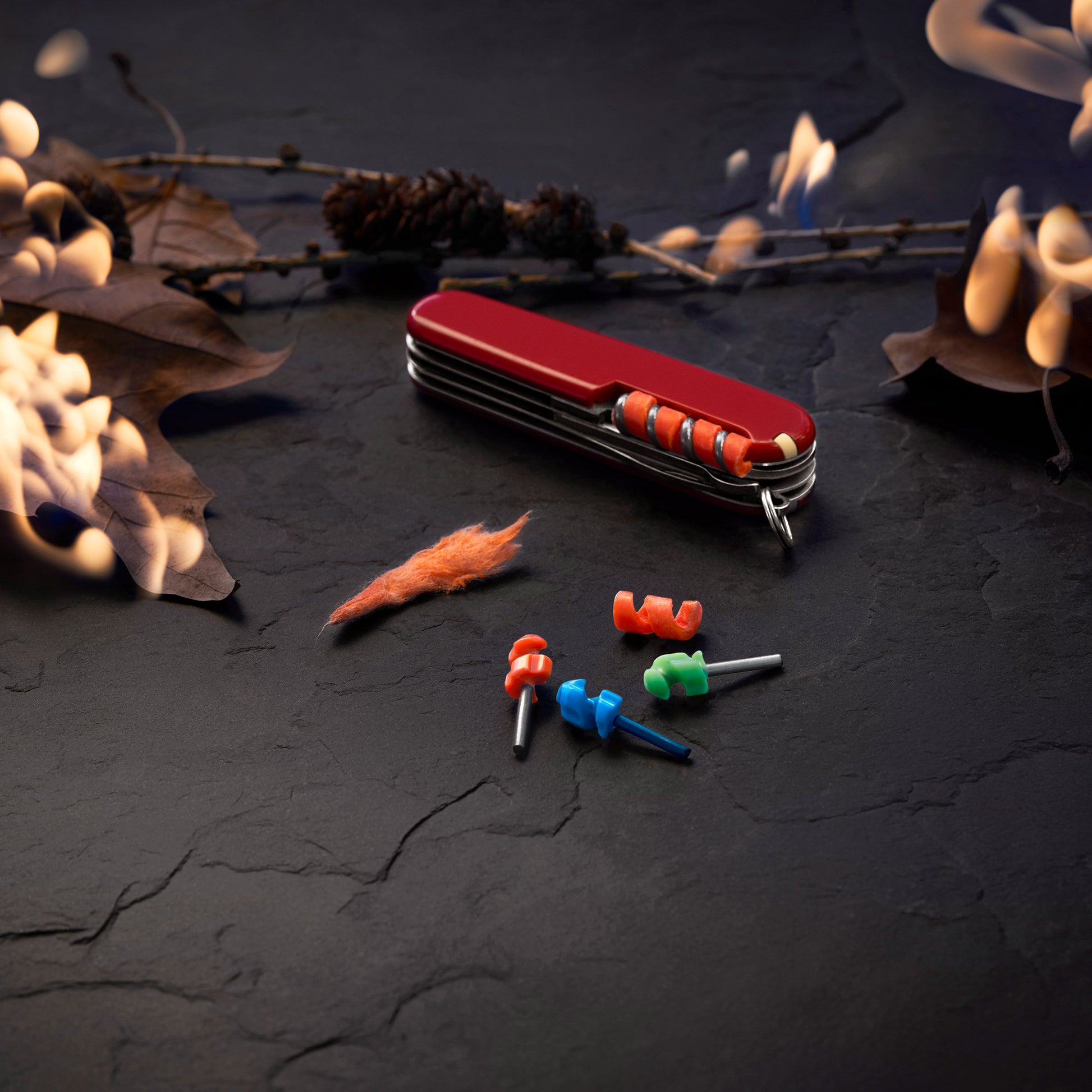 The art of making fire is an ancient and essential skill. Whether you're keeping warm or cooking, now you can carry the secret of this powerful element cleverly encased in your pocket knife's corkscrew to start a fire in no time. With three different glowing fire steels and six waterproof helix tinders, our compact Mini Tool FireAnt Set is a masterful upgrade for your outdoor adventure.