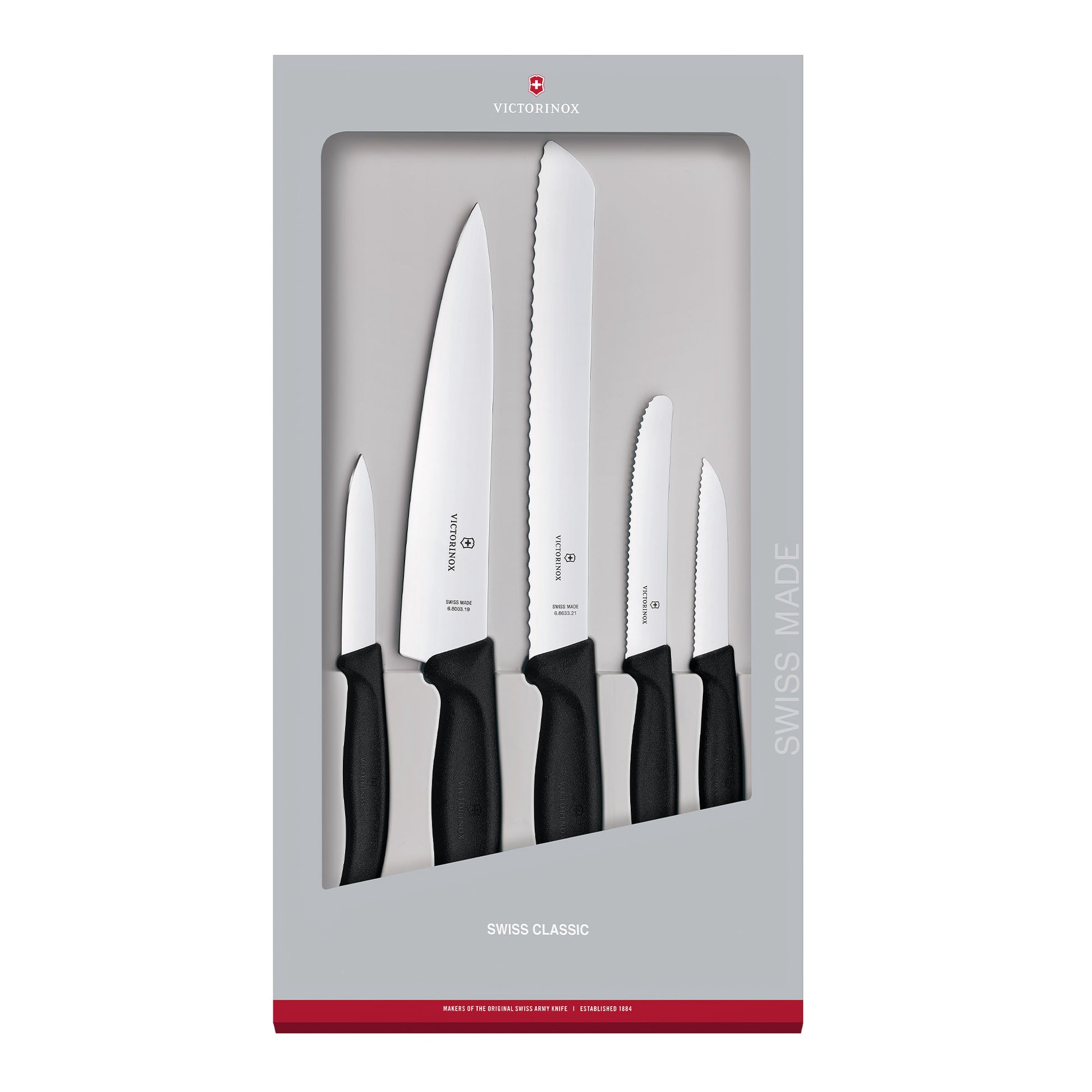 A set of super dexterous knives is the building block of your kitchen. They underpin all your culinary creativity (and dish dreams). You want blades that go the distance and are a pleasure to use. Our Swiss Classic Kitchen Set, 5 pieces, is the natural choice. Containing all the essentials for you to chop, slice, dice, peel and pare your way to everyday dining perfection.